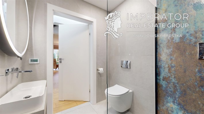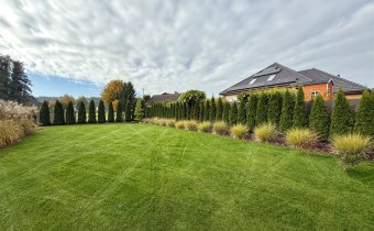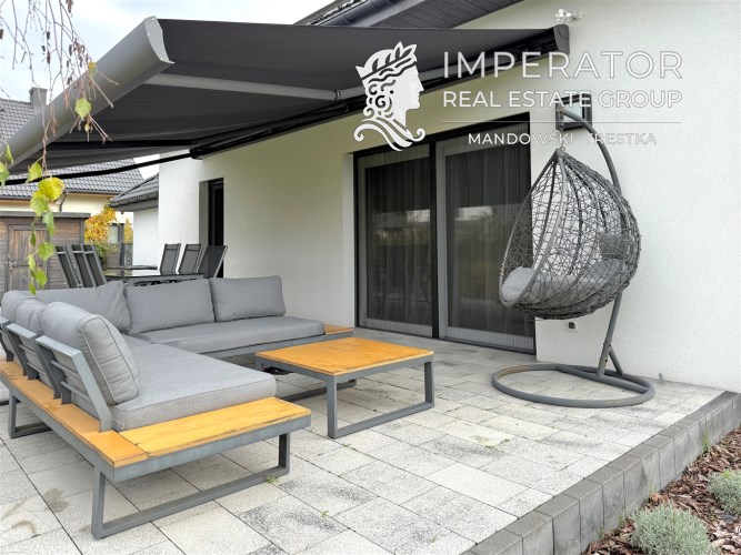 Taras, zielony i puszysty trawnik, w pełni oświetlona nocną nieruchomość zapewnia doskonałe miejsce do relaksu i zabawy. Nad całym tarasem zamontowana jest nowoczesna markiza - pergola sterowana elektrycznie, zapewniając a komfortowy cień i ochronę przez słońcem.