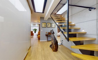 Wysokiej jakości materiały zostały wybrane z myślą o użytkowaniu nieruchomości w celach prywatnych przez właścicieli. Dom ten został wybudowany w 2019 r. i w pełni wykończony w 2020 roku. Cała przestrzeń nieruchomości jest funkcjonalnie zaprojektowana oraz bardzo dobrze doświetlona. Kuchnia jest w pełni wyposażona w najwyższej jakości sprzęty AGD. We wszystkich pomieszczeniach znajduje się wysokiej klasy podłoga, włoskiej produkcji.