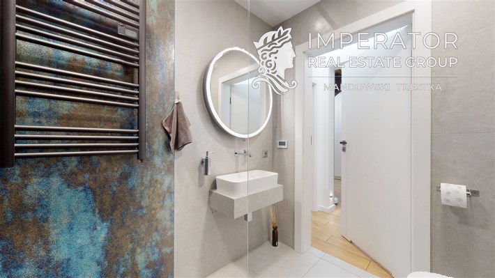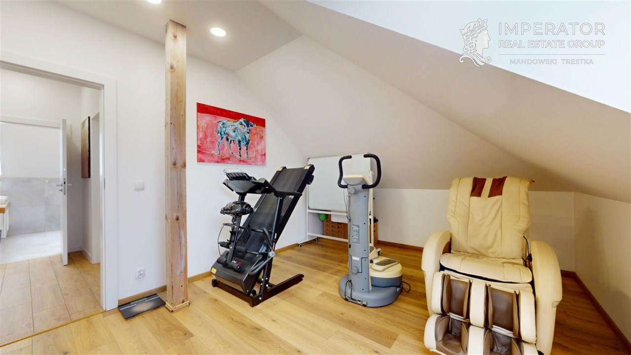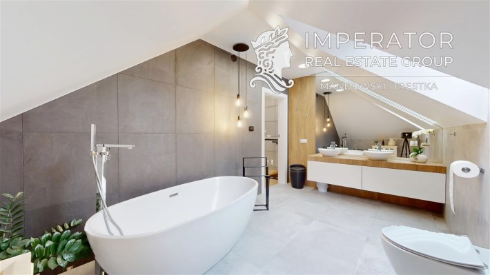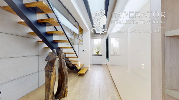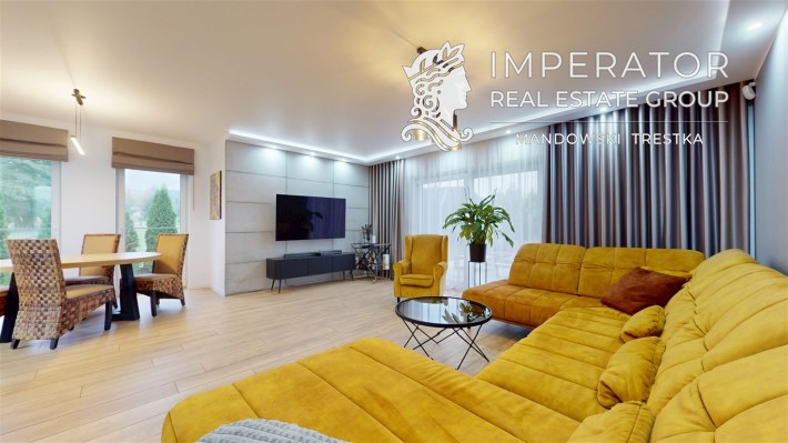 Wysokiej jakości materiały zostały wybrane z myślą o użytkowaniu nieruchomości w celach prywatnych przez właścicieli. Dom ten został wybudowany w 2019 r. i w pełni wykończony w 2020 roku. Cała przestrzeń nieruchomości jest funkcjonalnie zaprojektowana oraz bardzo dobrze doświetlona. Kuchnia jest w pełni wyposażona w najwyższej jakości sprzęty AGD. We wszystkich pomieszczeniach znajduje się wysokiej klasy podłoga, włoskiej produkcji.