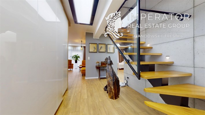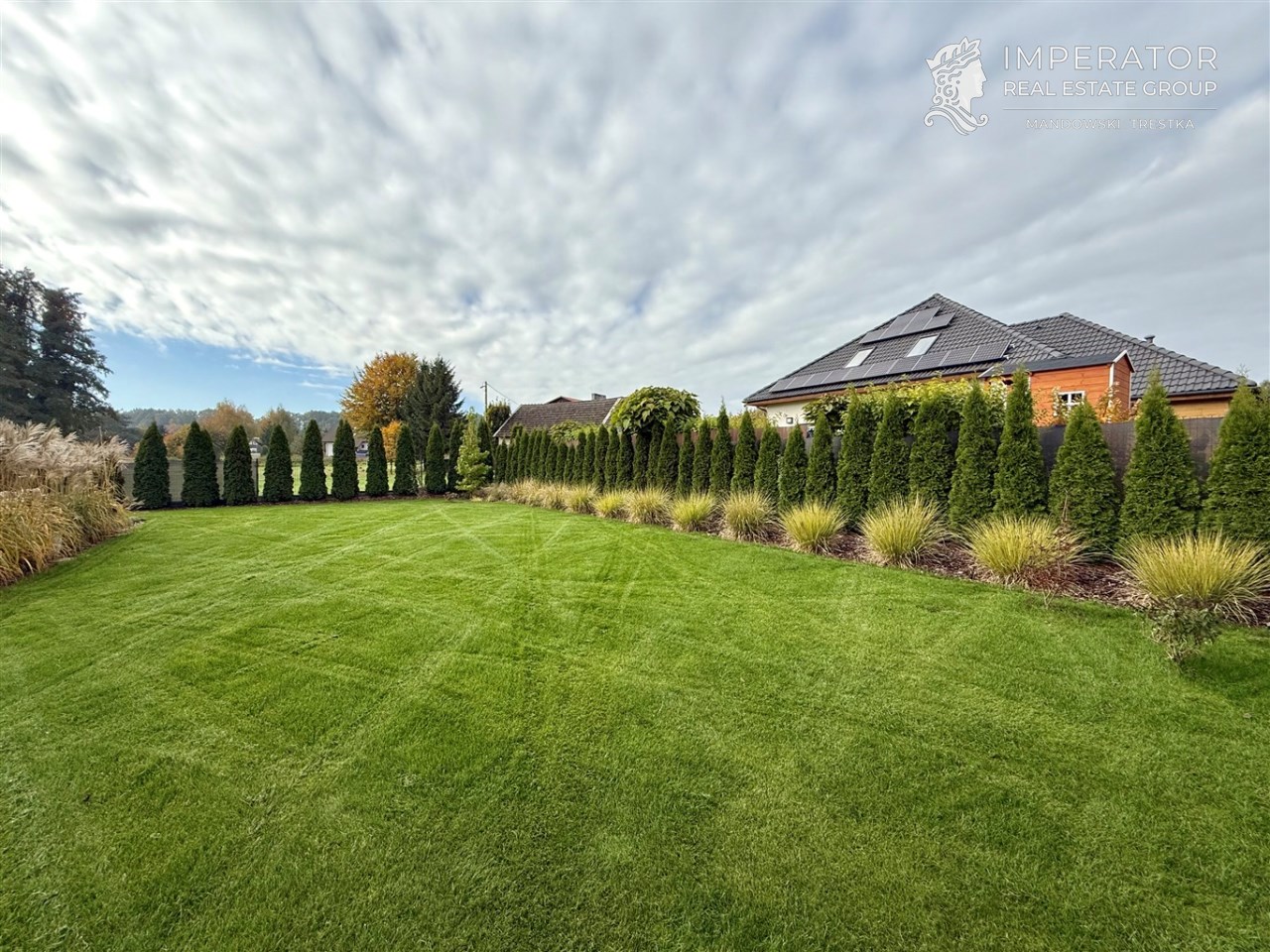 Prezentowana nieruchomość to parterowy dom o powierzchni całkowitej 276 m² usytuowany na posesji składającej się z działki o łącznej powierzchni 806 m². Dom został wykończony w wysokim standardzie, z dbałością o każdy szczegół. Wyposażony jest w meble wykonane na zamówienie.