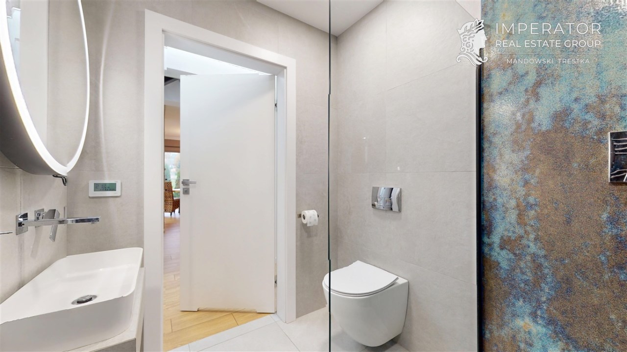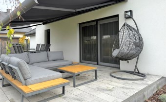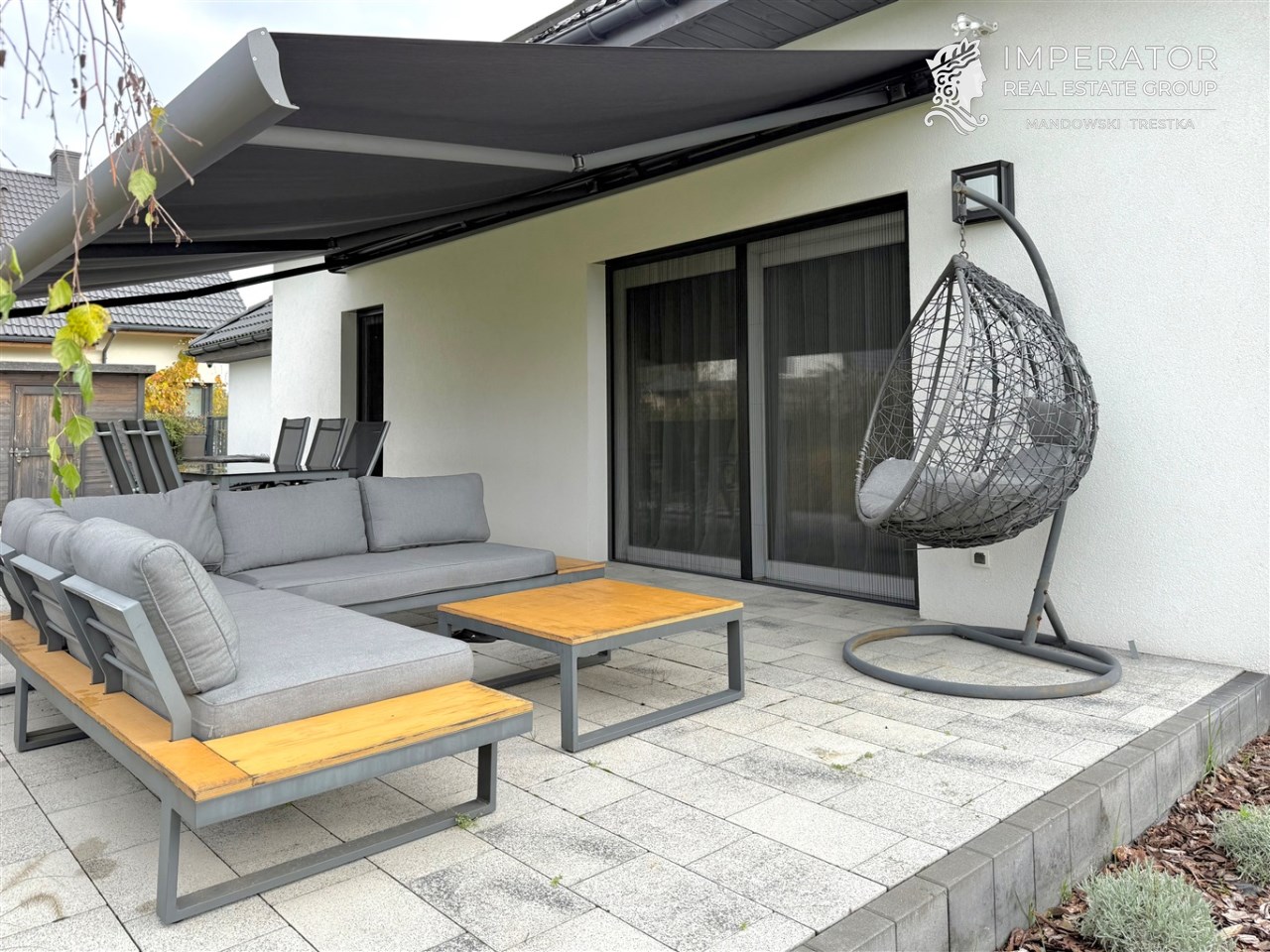 Taras, zielony i puszysty trawnik, w pełni oświetlona nocną nieruchomość zapewnia doskonałe miejsce do relaksu i zabawy. Nad całym tarasem zamontowana jest nowoczesna markiza - pergola sterowana elektrycznie, zapewniając a komfortowy cień i ochronę przez słońcem.