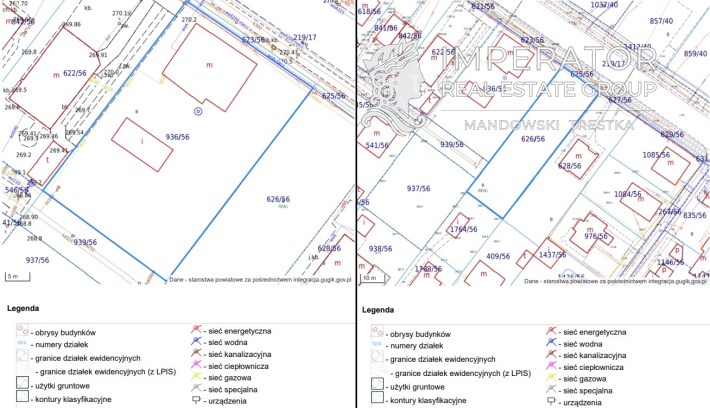 Działka 626/56 (1121 m2): Działka o długości 62m oraz szerokości 18m(front), stanowiąca doskonałe zaplecze dla terenu frontowego (np. pod parking, ogród lub dodatkową zabudowę usługową).