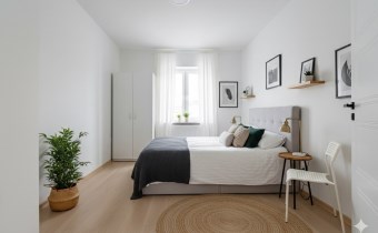 Zdjęcia salonu, pokoju i aneksu kuchennego przedstawiają możliwości aranżacji we własne meble i wyposażenie.