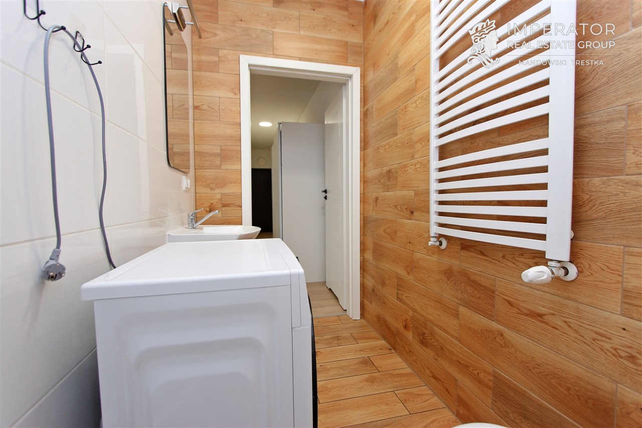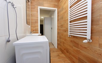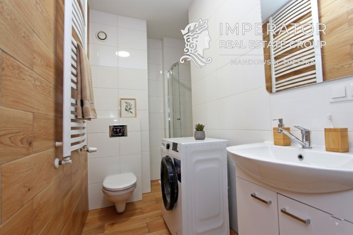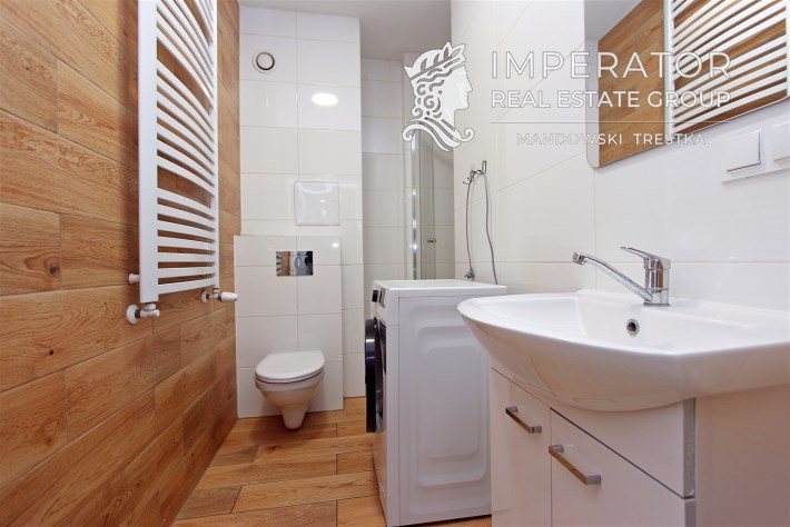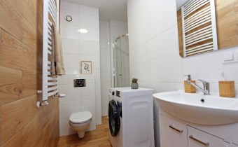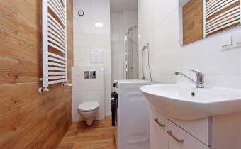 • Wykończona łazienka z prysznicem i WC