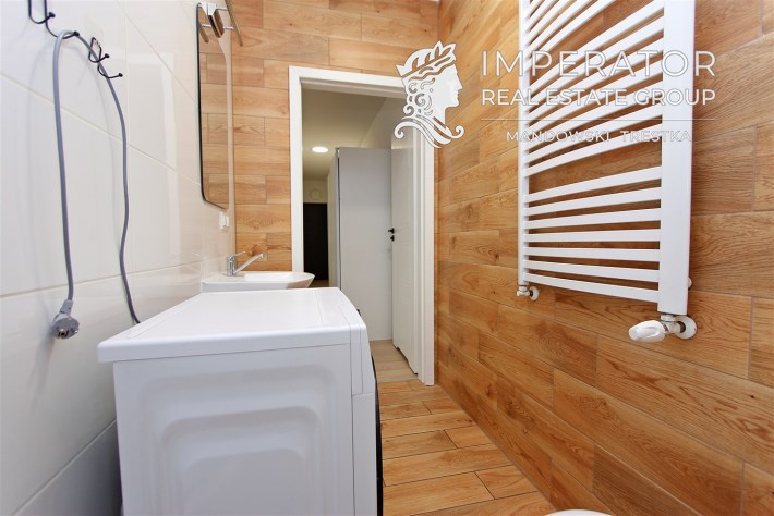 Na podłogach położone zostały panele podłogowe. Została poprowadzona pełna elektryka, a łazienki są już wyposażone w armaturę: wanna / prysznic, umywalka, krany, WC  / bidet.