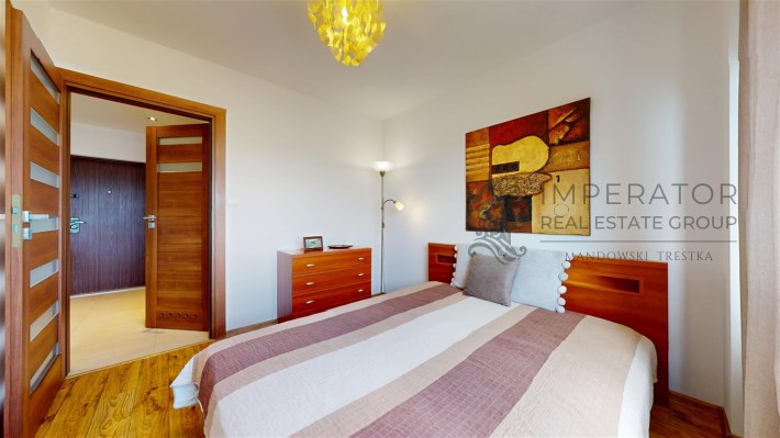 - SYPIALNIA - wyposażona w duże łóżko (160cmx200cm), komodę, obraz i lampę stojącą.