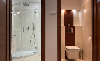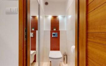 - OSOBNE WC - w którym znajduje się wc oraz wbudowana szafka z lustrem.