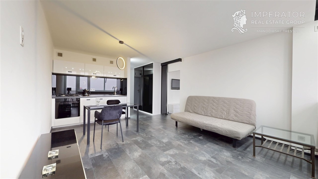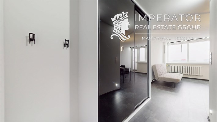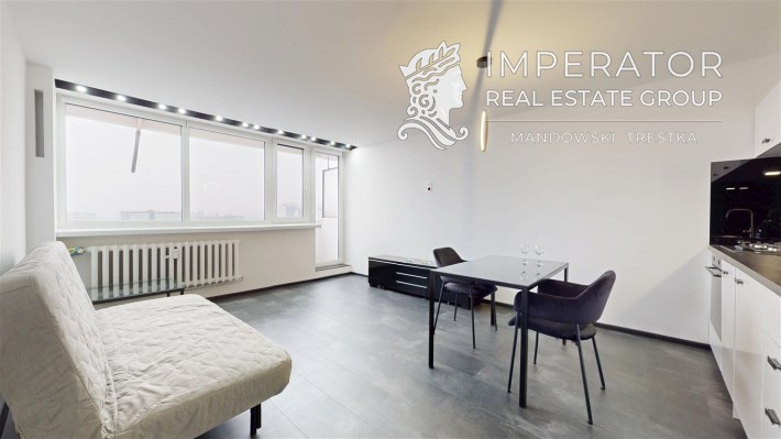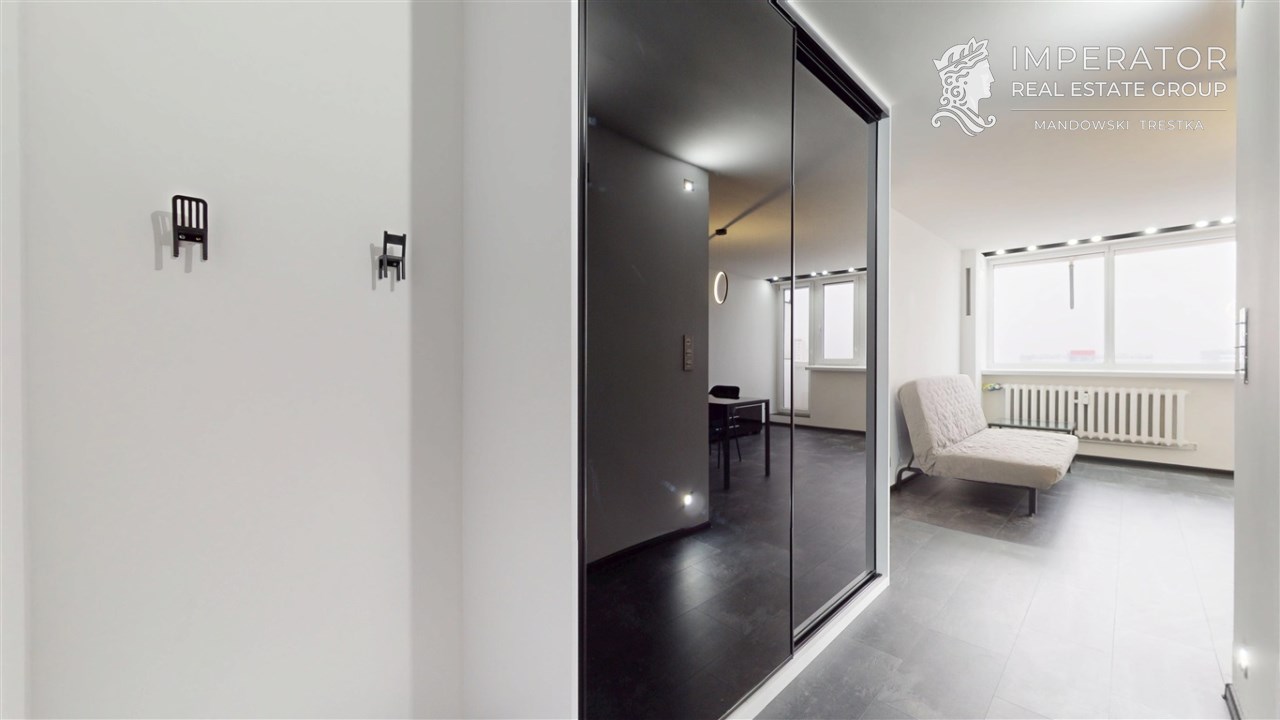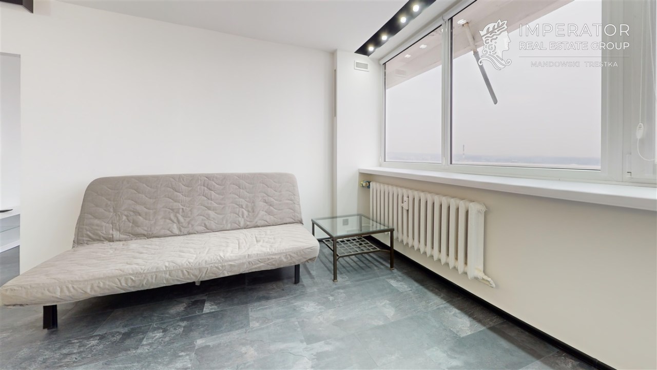 Do wynajęcia nowoczesne, w pełni wyposażone mieszkanie o powierzchni 38 m², dwupokojowe: salon z aneksem kuchennym oraz sypialnia, całe świeżo po generalnym remoncie, zlokalizowane na 13. piętrze z widokiem w zadbanym bloku z 3 windami