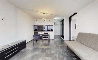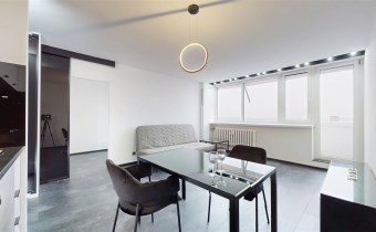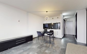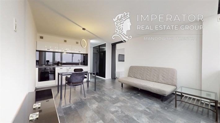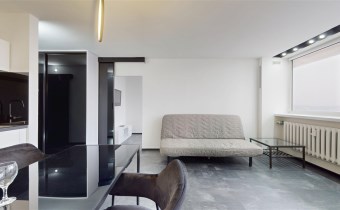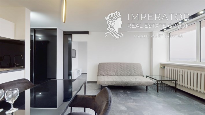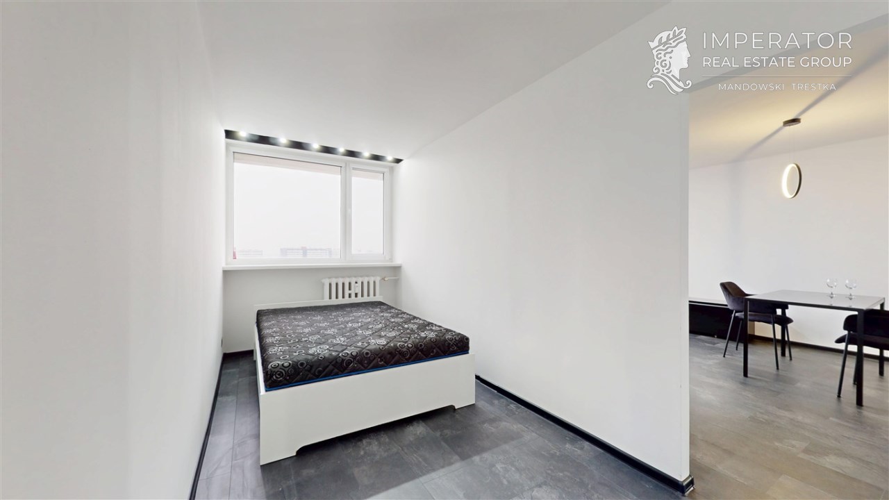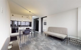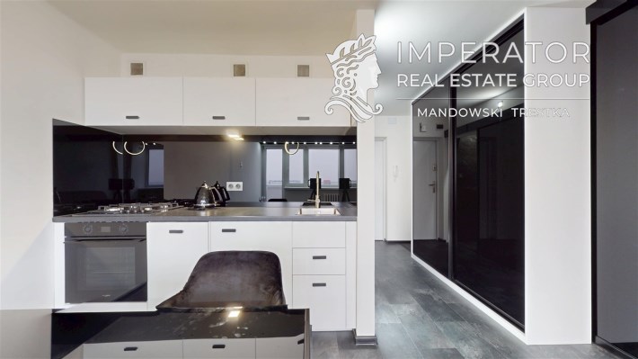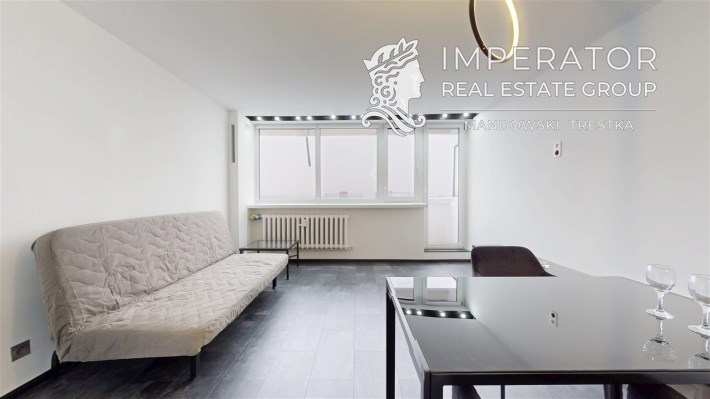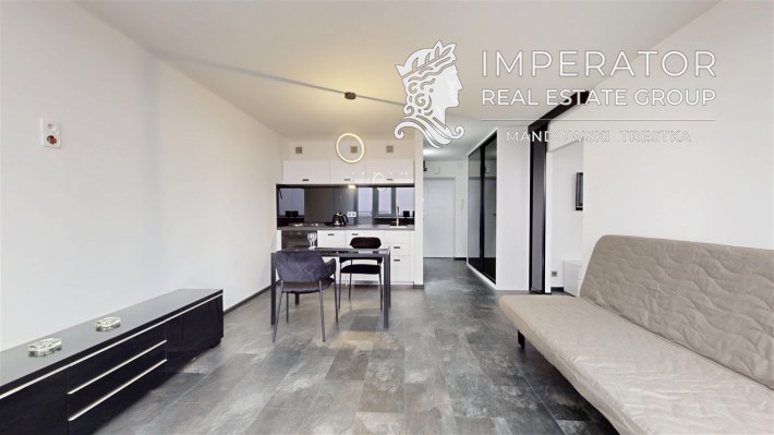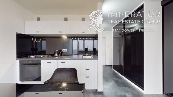 Do wynajęcia nowoczesne, w pełni wyposażone mieszkanie o powierzchni 38 m², dwupokojowe: salon z aneksem kuchennym oraz sypialnia, całe świeżo po generalnym remoncie, zlokalizowane na 13. piętrze z widokiem w zadbanym bloku z 3 windami