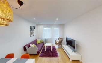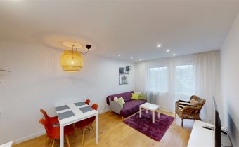 Do wynajęcia dla 2 osób 2 niezależne pokoje z szafami i łóżkami, duży salon z balkonem, aneks kuchenny i łazienka. Mieszkanie na 1 piętrze z windą.