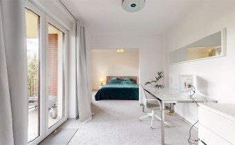 • Dwa balkony: Duże, z wypoczynkiem ogrodowym, zapewniające komfortowy wypoczynek na świeżym powietrzu