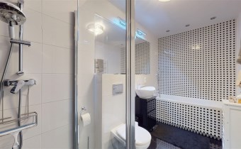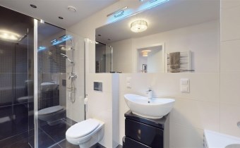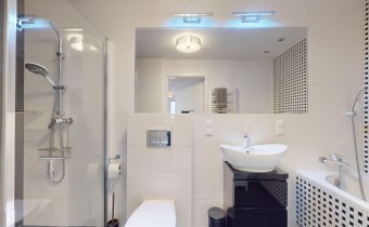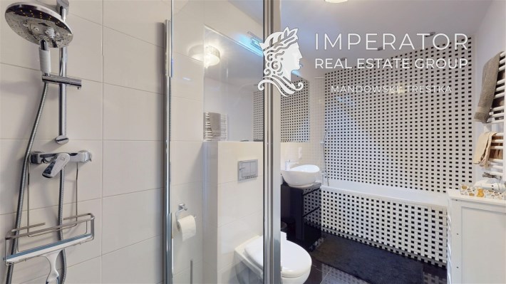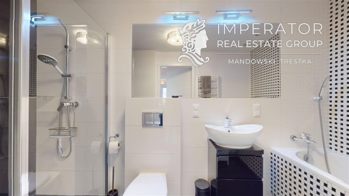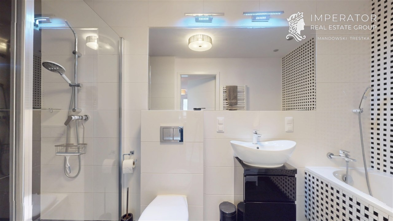 • Dwie łazienki: duży salon kąpielowy z wanną i z osobnym prysznicem, ponadto druga łazienka z WC