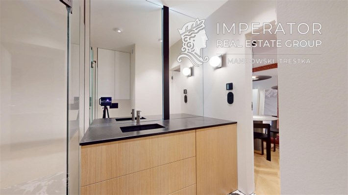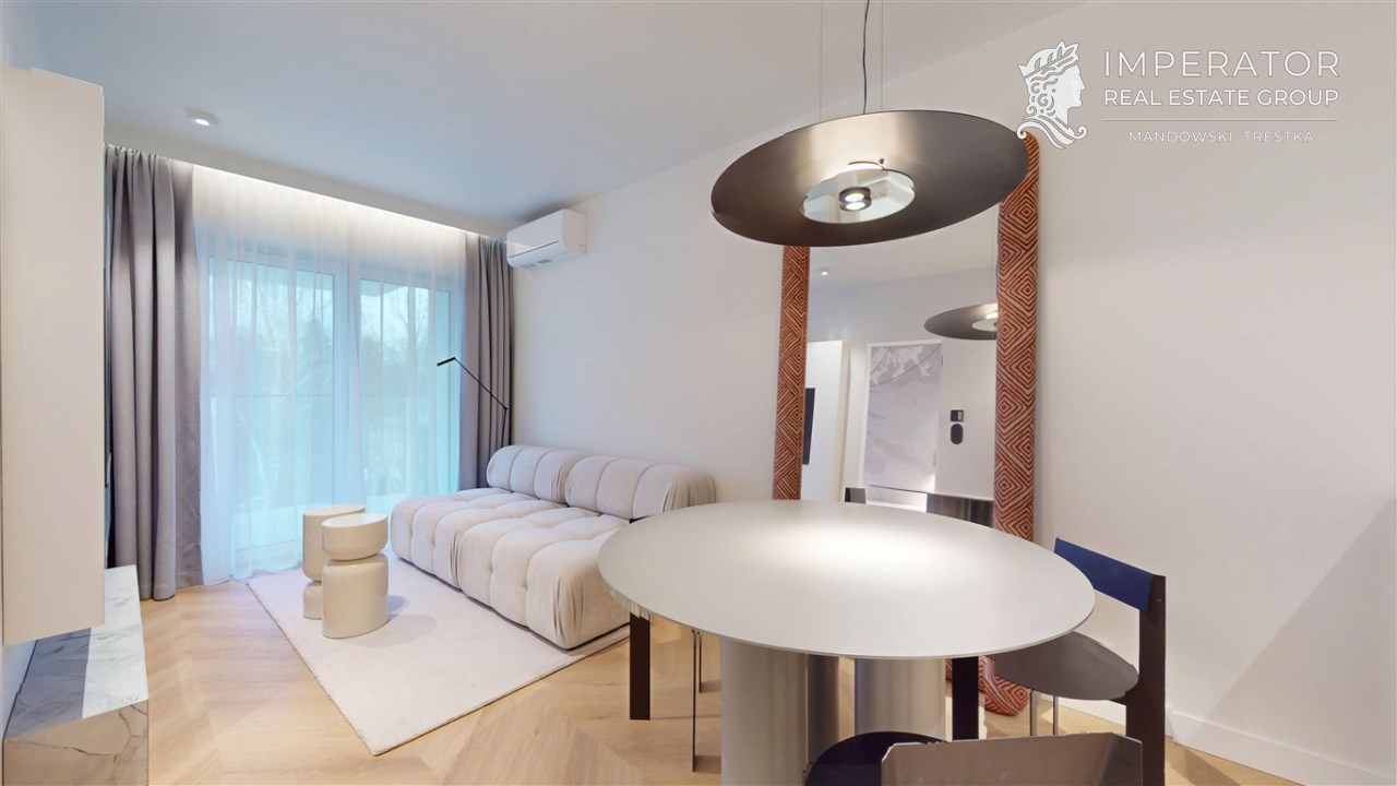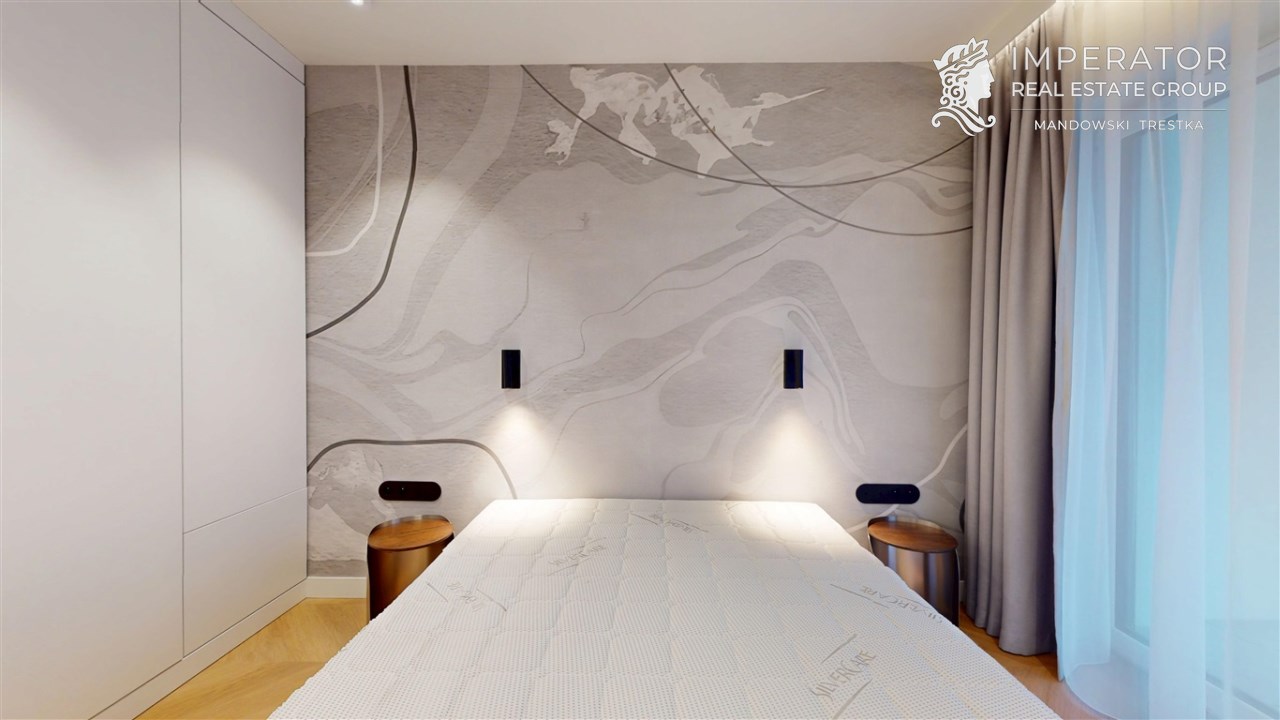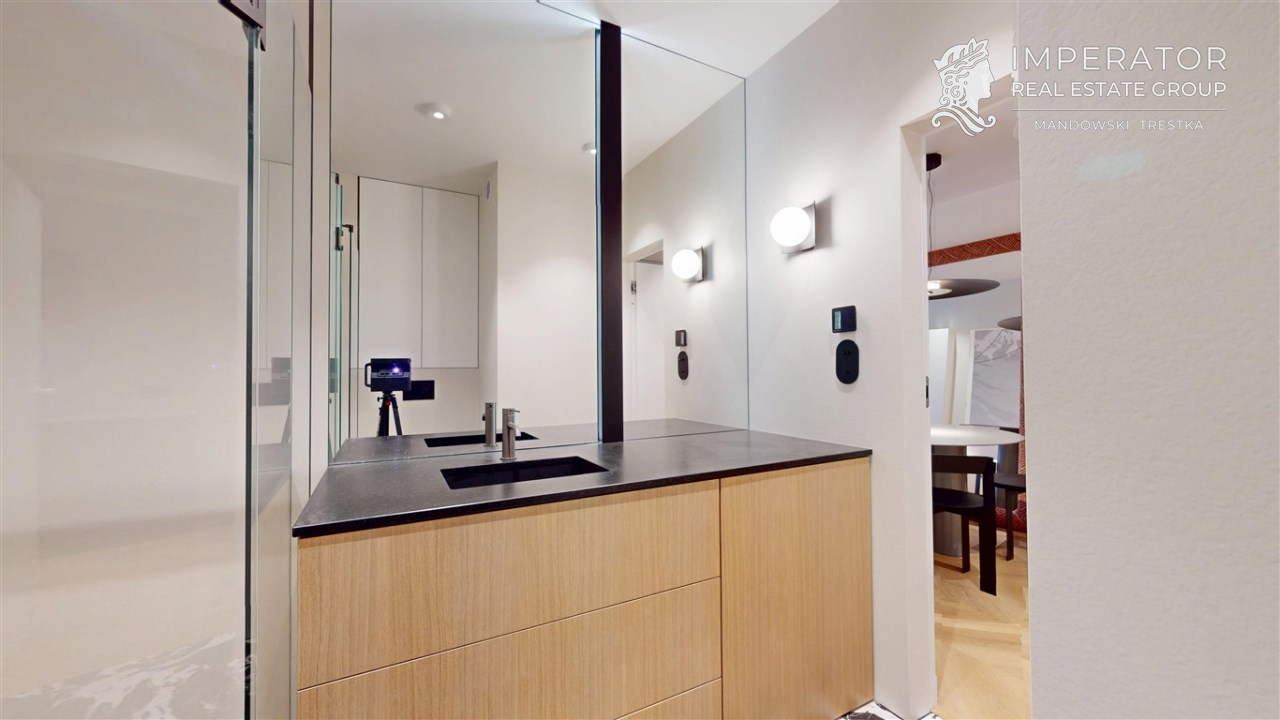 Mieszkanie zachwyca elegancją, szlachetnością materiałów oraz harmonijną aranżacją oraz wyposażeniem absolutnie najwyższej jakości. Dla codziennego komfortu wynajem następuje z miejscem parkingowym w podziemnej hali garażowej.