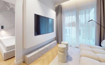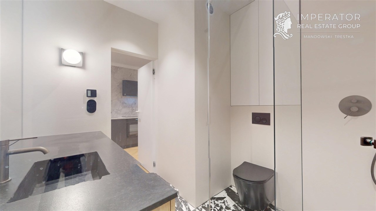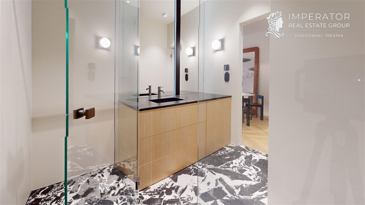 - Materiały premium – wysokogatunkowe wykończenia, elegancka stolarka, armatura renomowanych producentów, gustowne oświetlenie