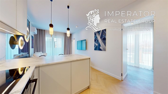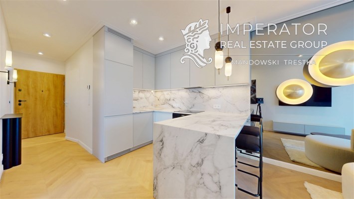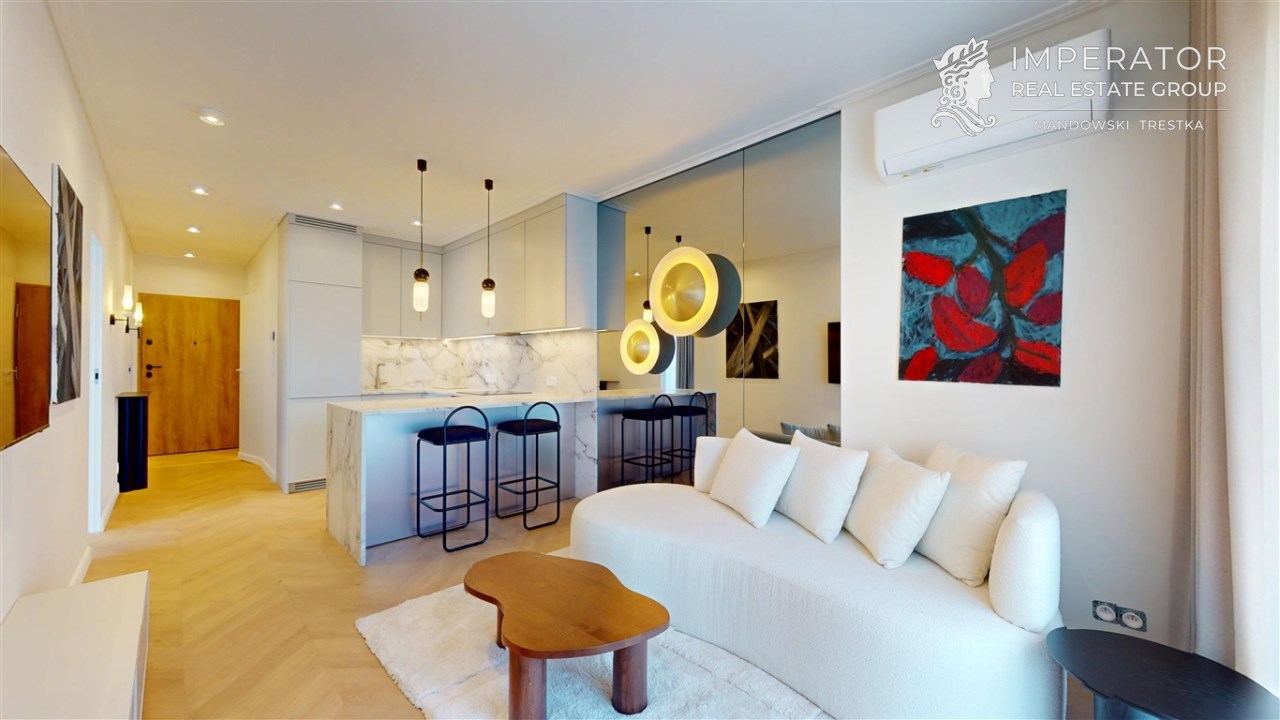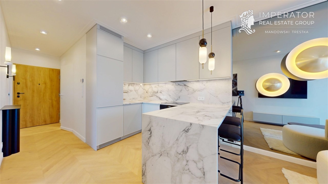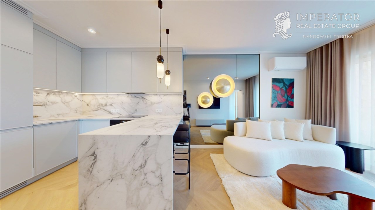 Mieszkanie zachwyca elegancją, szlachetnością materiałów oraz harmonijną aranżacją oraz wyposażeniem absolutnie najwyższej jakości. Dla codziennego komfortu wynajem następuje z miejscem parkingowym w podziemnej hali garażowej.