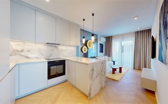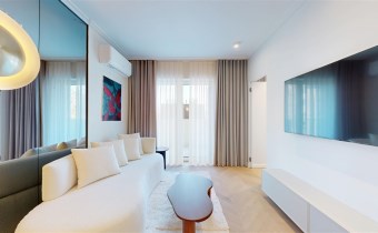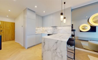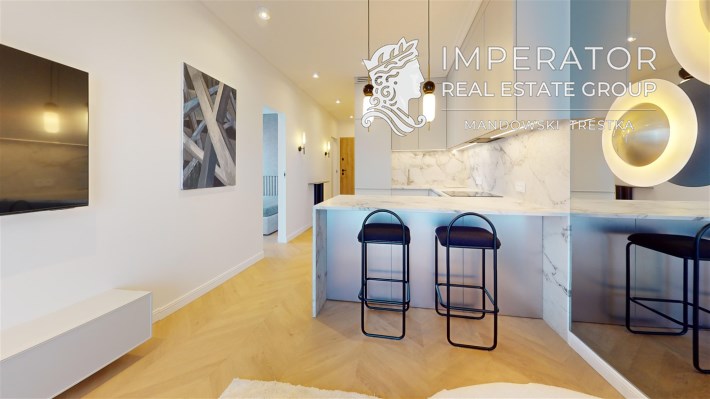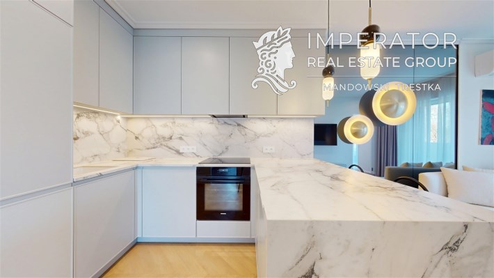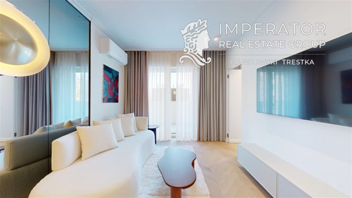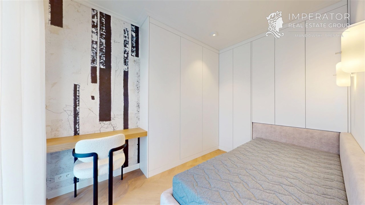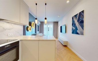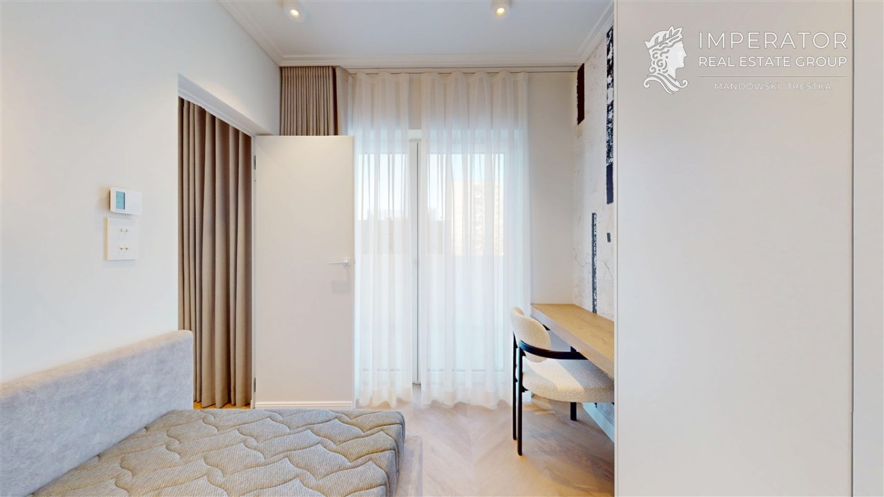Mieszkanie zachwyca elegancją, szlachetnością materiałów oraz harmonijną aranżacją oraz wyposażeniem absolutnie najwyższej jakości. Dla codziennego komfortu wynajem następuje z miejscem parkingowym w podziemnej hali garażowej.