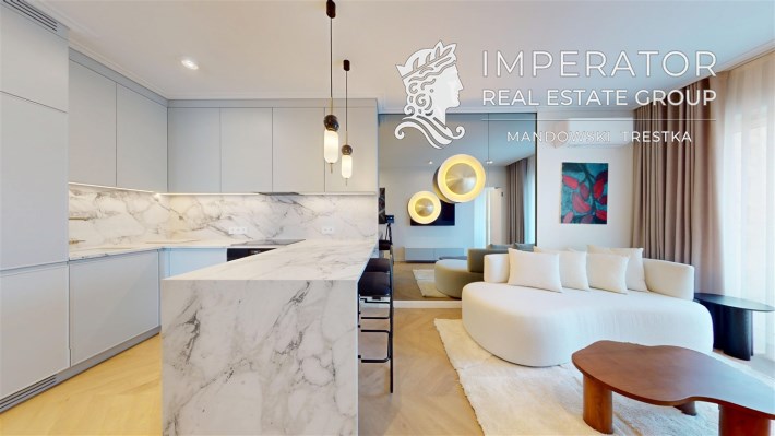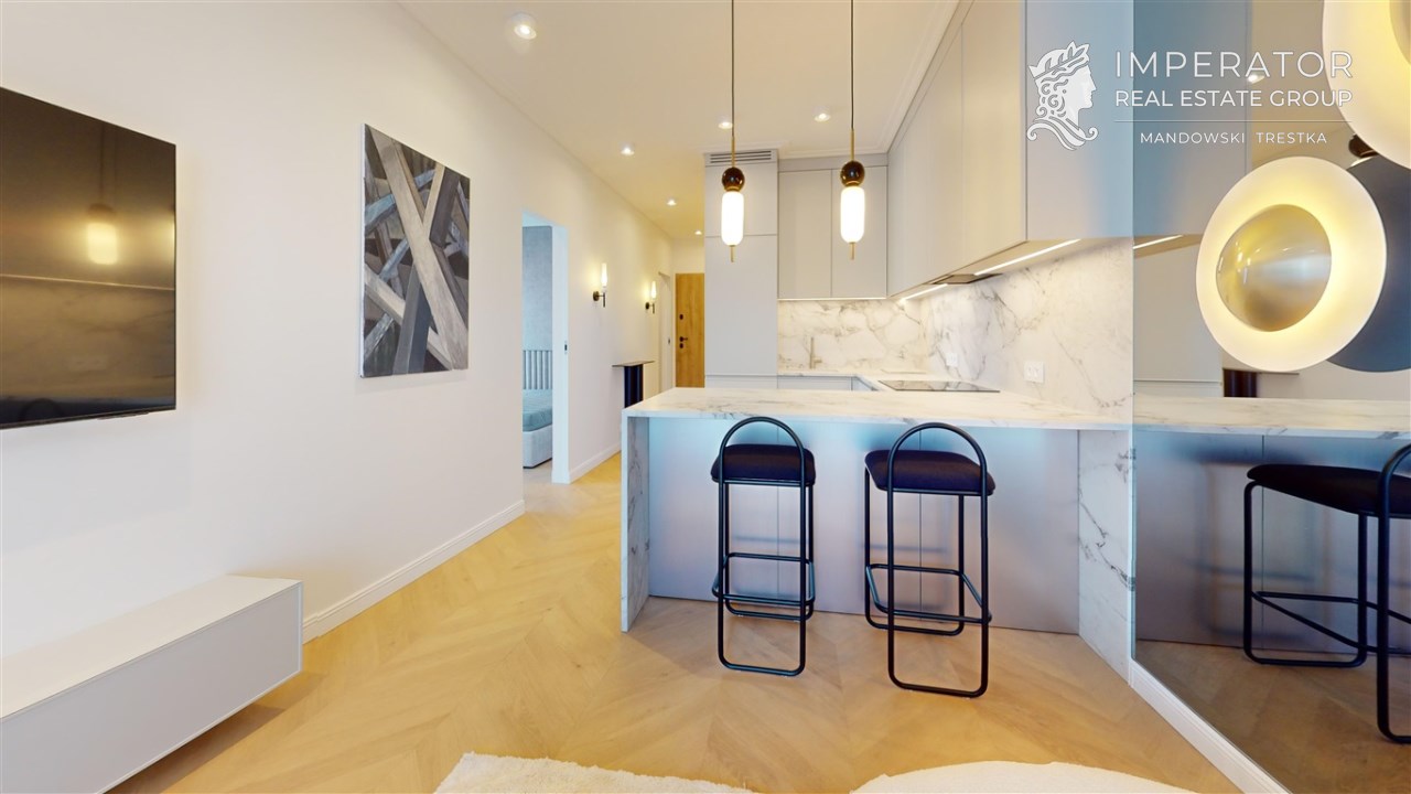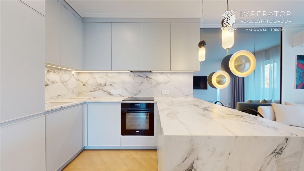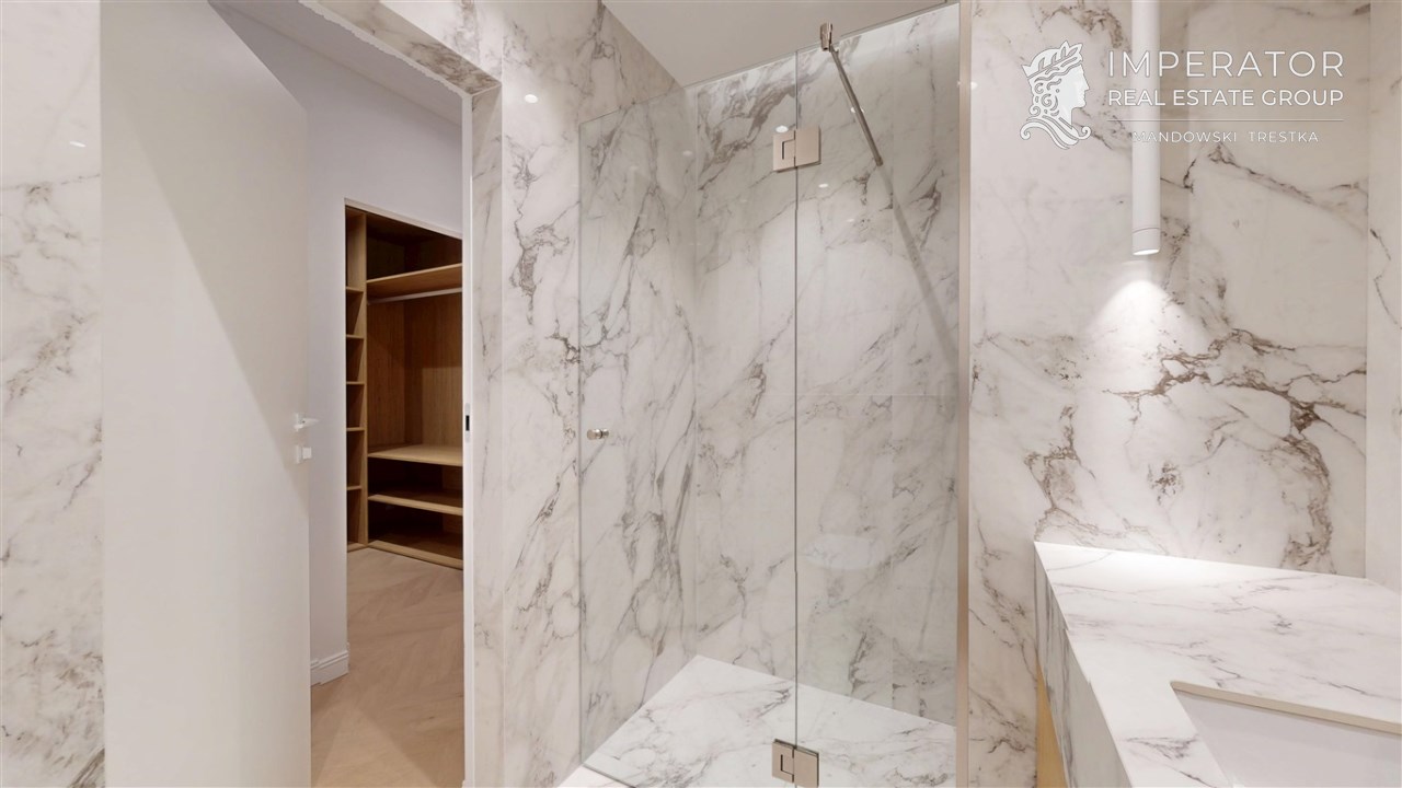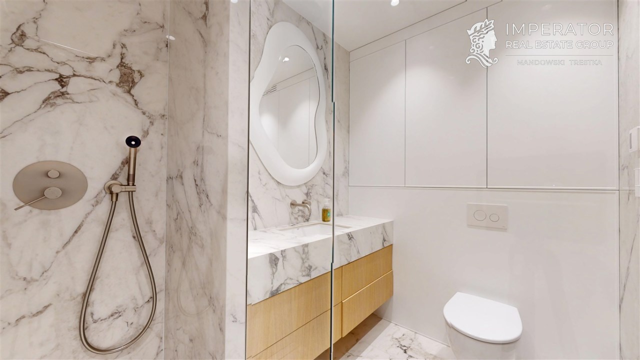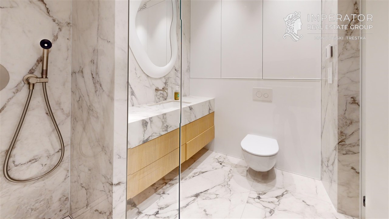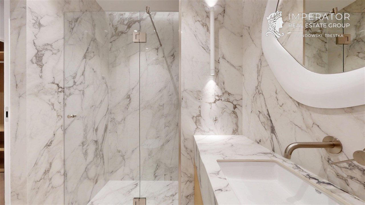 - Materiały premium – wysokogatunkowe wykończenia, elegancka stolarka, armatura renomowanych producentów, gustowne oświetlenie