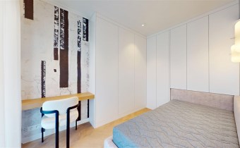 - Druga sypialnia / gabinet z biurkiem i szafą w zabudowie