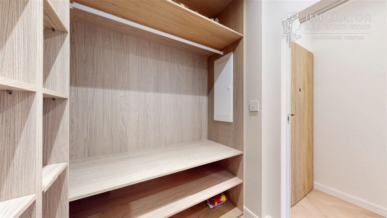 - Duża garderoba – zaprojektowana przestrzeń do przechowywania, gwarantująca porządek i wygodę